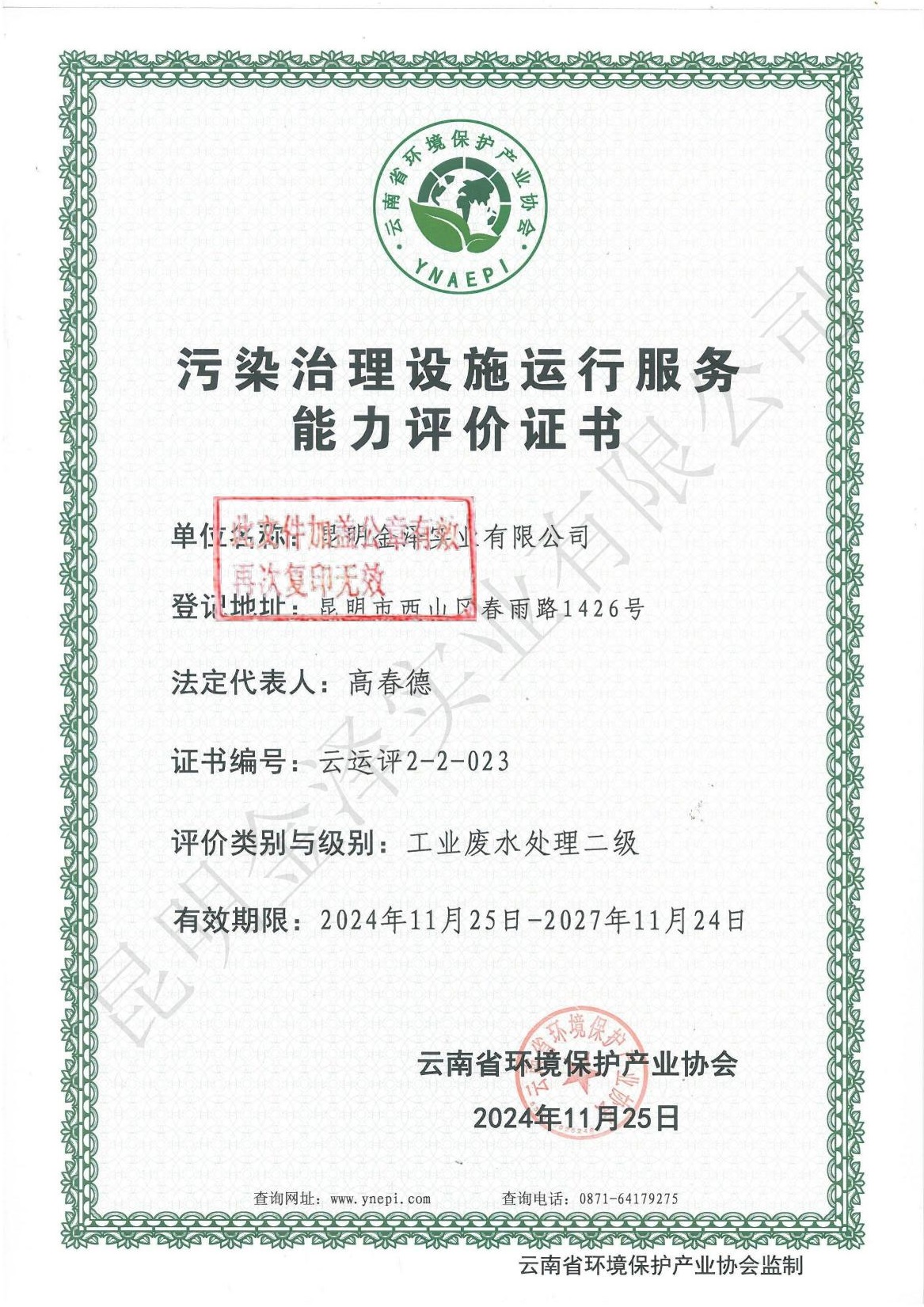 二級工業(yè)廢水處理運行服務(wù)資質(zhì)證書(shū)